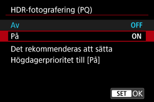 : HDR-fotografering (PQ)] inställt till [På] före bild-/filmvisning på en HDR-skärm bör du ställa in [