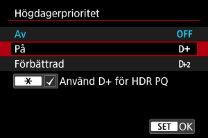 : Högdagerprioritet] är inställt till [Av] när [