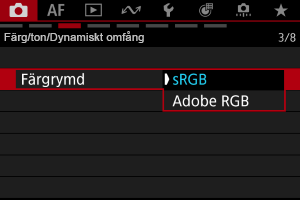 - Välj [sRGB] eller [Adobe RGB] och tryck sedan på