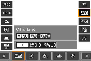 för att välja ett alternativ för vitbalans.