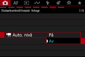 Automatisk nivåjustering hjälper till att hålla filmer horisontella under inspelning. Den här uppsättningen funktioner låter visningsområdet bli smalare och motiv kan förstoras.