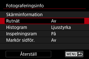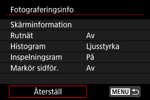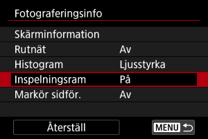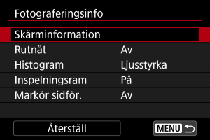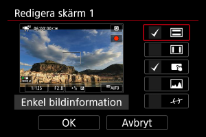 och välj vilka informationsskärmar som ska visas på videokameran.