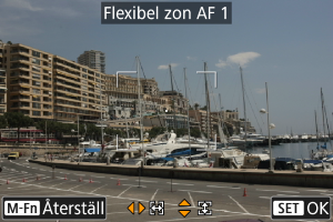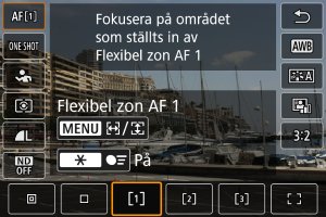 Du kan ändra storleken på Zon-AF-ramen som visas för Flexible Zon-AF 1–3.