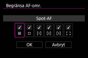 Välj det AF-område som ska begränsas och tryck på