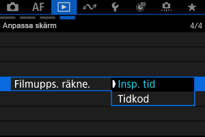 Du kan välja hur tid visas på filmvisningsskärmen.