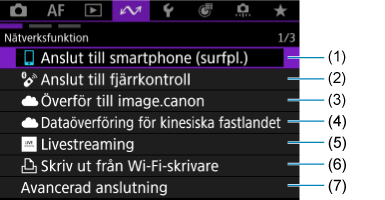 - Vissa menyalternativ kan inte konfigureras medan videokameran är ansluten till datorer eller andra enheter via en gränssnittskabel.