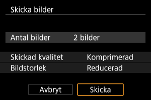 - Om flera bilder skickas kan du via bekräftelseskärmen även ändra [Bildstorlek] efter behov innan du skickar.