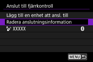 Du kan ta bort anslutningsinformationen. Parkopplingsinformationen om alla anslutna BR-E1-enheter raderas.