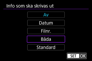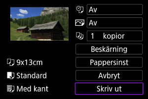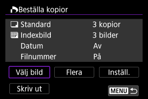 - Se Beställa kopior (DPOF) för hur du kan ställa in utskriften.