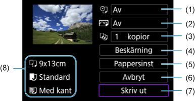 - Du kan kontrollera det beskurna bildområdet uppe till vänster på menybilden för utskriftsinställning.