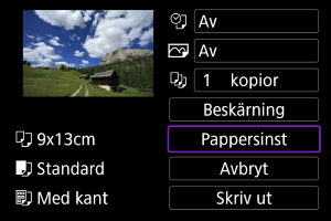- Bildområdet inom beskärningsramen skrivs ut. Ramens form (sidförhållande) kan ändras med [Pappersinst].