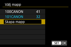 - En mapp kan innehålla upp till 9999 bilder (filnummer 0001–9999). När en mapp blir full skapas automatiskt en ny mapp med löpande numrering. Dessutom skapas en ny mapp automatiskt om manuell återställning () utförs. Mappar från 100 till 999 kan skapas.