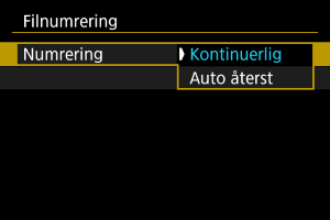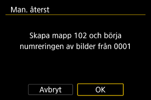 När du återställer filnumreringen manuellt skapas en ny mapp automatiskt och filnumreringen för bilder som sparas i mappen börjar på 0001.
