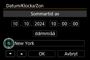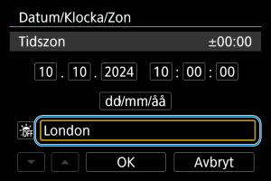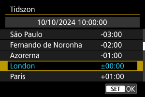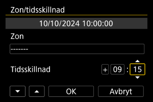 - Välj [OK] när du har angett tidszonen eller tidsskillnaden.