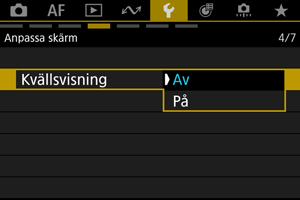 Ändra färgen på informationen som visas på skärmen och menyskärmen till en färg som är lämplig för fotografering i mörka områden.