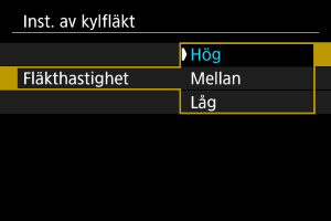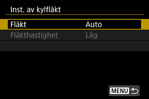 - Kylfläkten kanske inte stannar även när den är inställd till [Auto] och används under höga temperaturer och andra fotograferingsmiljöer.