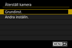 Videokamerainställningarna för fotograferingsfunktioner och menyfunktioner kan återställas till sina standardvärden.