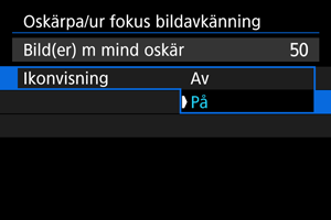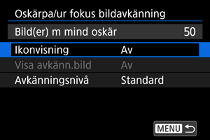 Visa] för att kontrollera ikoner eller detekteringsramar som indikerar mängden oskärpa när [