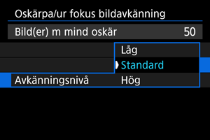 Ställ in detekteringsalternativen för oskärpa/utanför fokus.