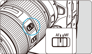 Ställ in objektivets omkopplare för fokuseringsmetod på