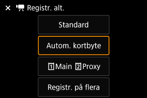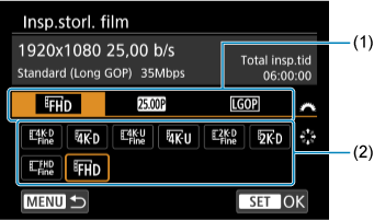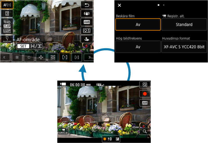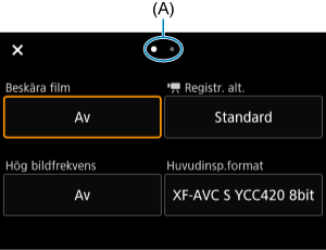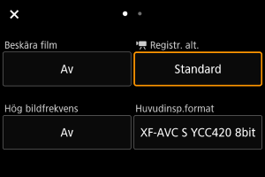 Precis som vid stillbildsfotografering kan du trycka på knappen för att komma åt snabbkontrollskärmen. Varje gång knappen