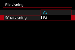 - [Sökarvisning]-inställningar träder i kraft när [Bildvisning] är inställd på ett annat alternativ än [Av].