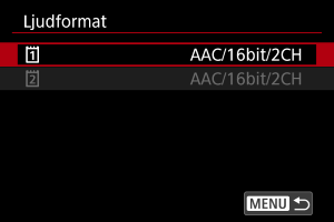 Du kan välja ljudformatet som används för ljud vid filminspelning.