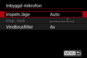 Tillgängligt om du använder den inbyggda mikrofonen eller mikrofoner anslutna med ett flerfunktionsfäste, som är kompatibla med vindbrusfilter.