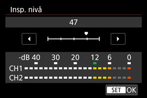 Du kan ändra ljudinspelningsnivån vid behov. Justera nivån i [Insp. nivå].