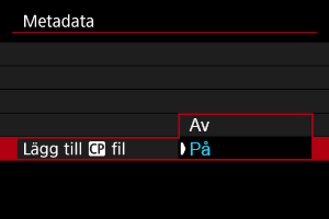 Du kan se mer information om metadata som har registrerats på kameran.