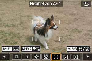 Du kan ställa in AF-punkt eller ram för AF-område manuellt. Här används flexibel Zon-AF på 1 skärm som ett exempel.