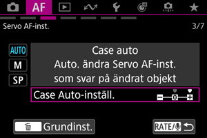 Du kan ställa in Servo AF-följningsparametrar efter varje fotograferingsförhållande.