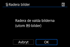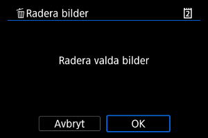 : Radera bilder] kommer alla bilder i mappen eller på kortet att raderas.