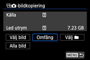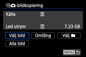 - Med [Välj bild] kan bilder i flera mappar inte kopieras samtidigt. Välj bilder som ska kopieras från en mapp i taget.