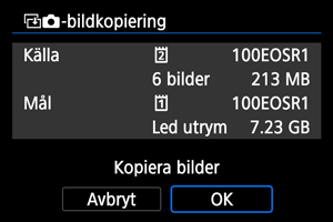 - Kontrollera informationen på käll- och målkortet och välj sedan [OK].