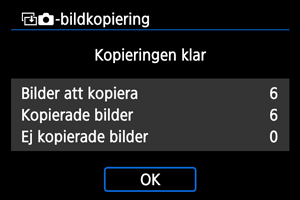 - Resultaten visas när kopieringen är klar. Välj [OK] och återgå till skärmen i steg två.