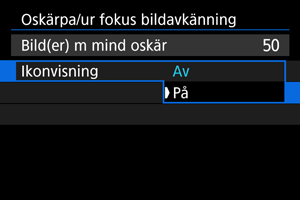 Visa] för att kontrollera ikoner eller detekteringsramar som indikerar mängden oskärpa när [