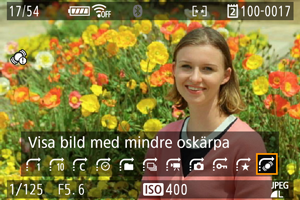 ] (lite oskärpa/utanför fokus) visas för bilder som är tydligare och mer i fokus jämfört med [Standard].