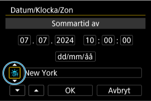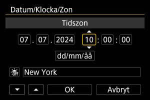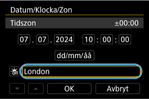 - När du har ändrat [Zon/tidsskillnad] bör du kontrollera att rätt datum och klockslag är inställt.