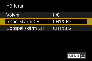 Välj [Inspel.skärm CH] eller [Uppspel.skärm CH].