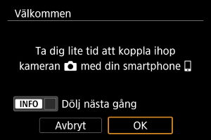 Instruktioner om att ansluta till en smartphone visas om du väljer [OK] när inställningsskärmen visas ().