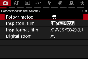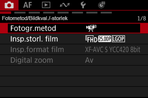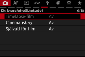 Nedtonade menyalternativ kan inte väljas. Menyalternativet är nedtonat om en annan funktionsinställning åsidosätter det.