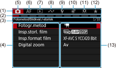 för att växla mellan huvudflikar (grupper med funktioner). Du kan också växla mellan flikar med zoomreglaget.