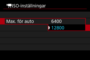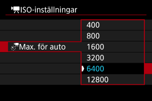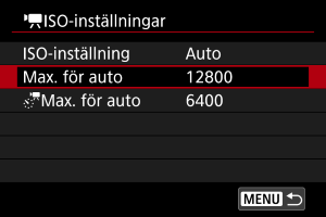 Du kan ställa in högsta värdet för ISO Auto vid filminspelning med metoderna [], [