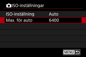 - Kan också ställas in på [ISO-inställning]-skärmen i [