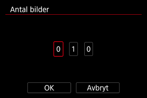 - Fotograferingen avslutas när du angett antal bilder eller vid den bortersta änden av brännviddsomfånget.