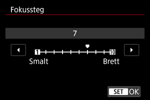 Ange hur mycket fokuseringen ska förskjutas. Värdet justeras automatiskt så att det passar bländarvärdet vid fotograferingen.