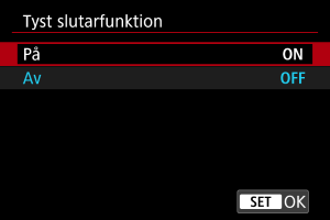 Funktionen tyst slutare begränsar inställningarna enligt följande.