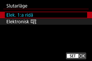 : Tyst slutarfunktion] till [På] ställer in slutarläget till [Elektronisk