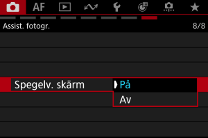 En spegelbild kan visas när du fotograferar med skärmen roterad mot motivet (mot kamerans framsida).